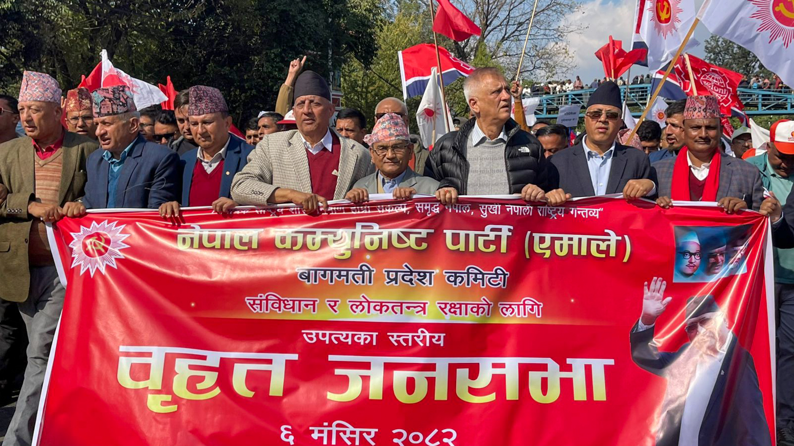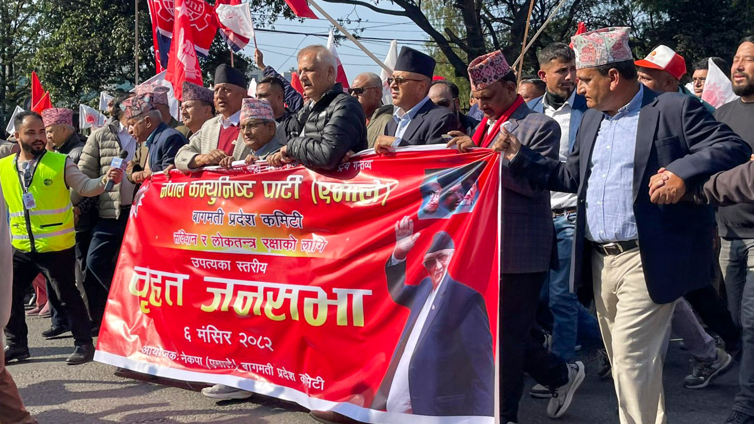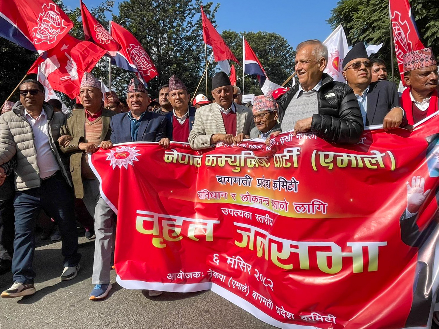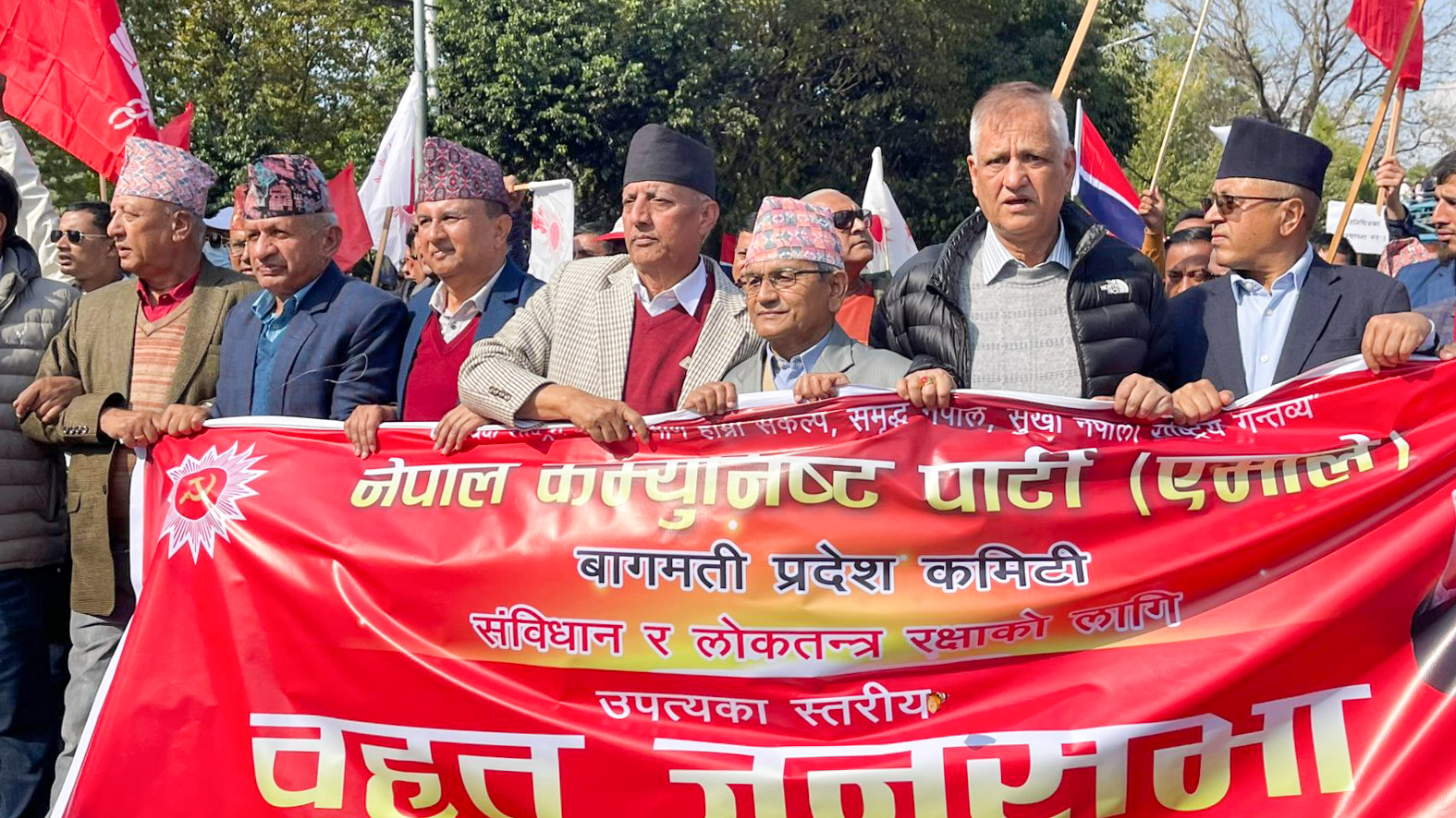 नेकपा एमालेले आफ्नो शक्ति प्रदर्शनका रुपमा काठमाडौंको भृकुटीमण्डपमा वृहत् जनप्रदर्शन तथा जनसभामा गरिरहेको छ । शीर्ष नेताहरु सहभागी हुने प्रदर्शनमा एमाले बागमती प्रदेश कमिटीले आयोजना गरेको हो ।