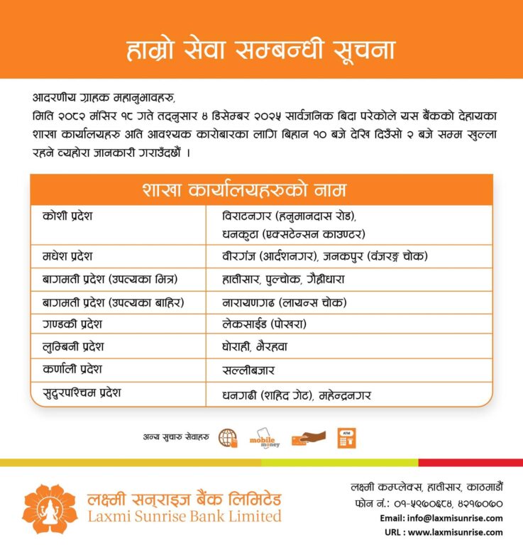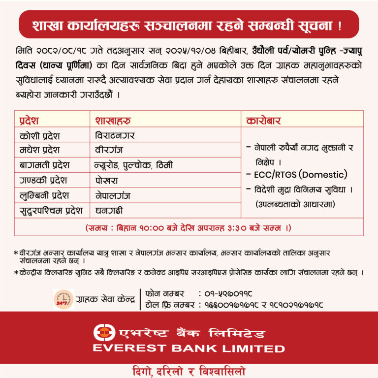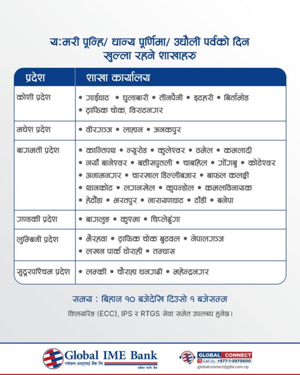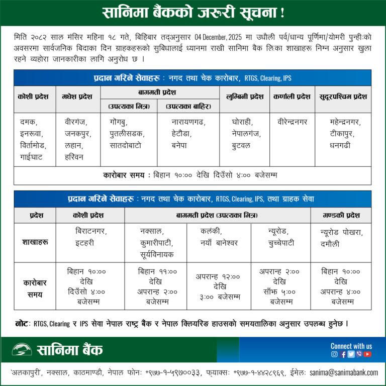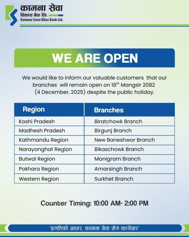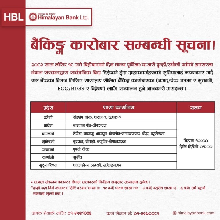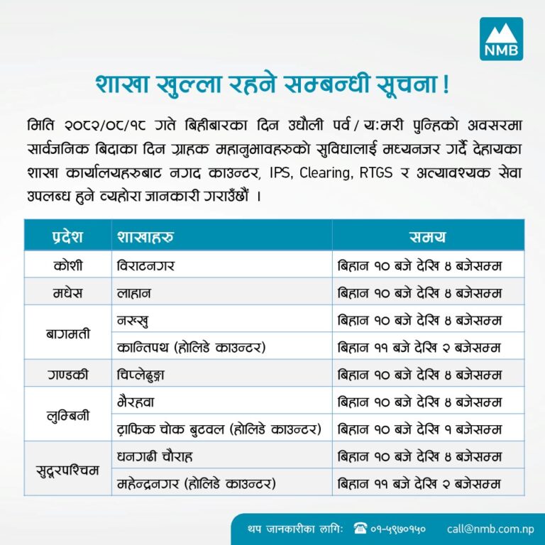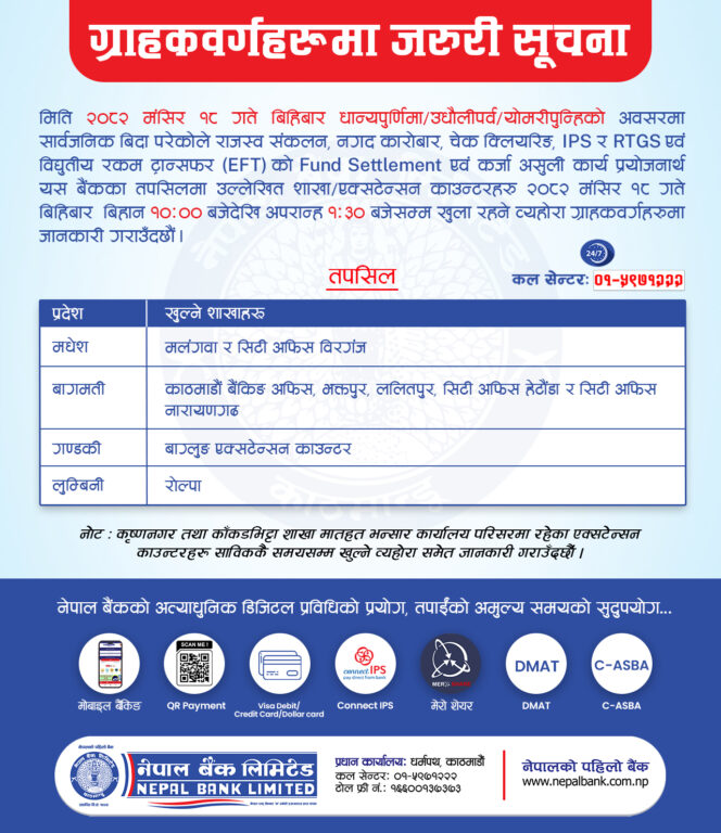 यी हुन सार्वजनिक विदामा पनि खुल्ने बैंकहरु