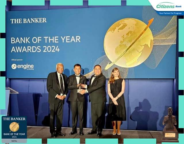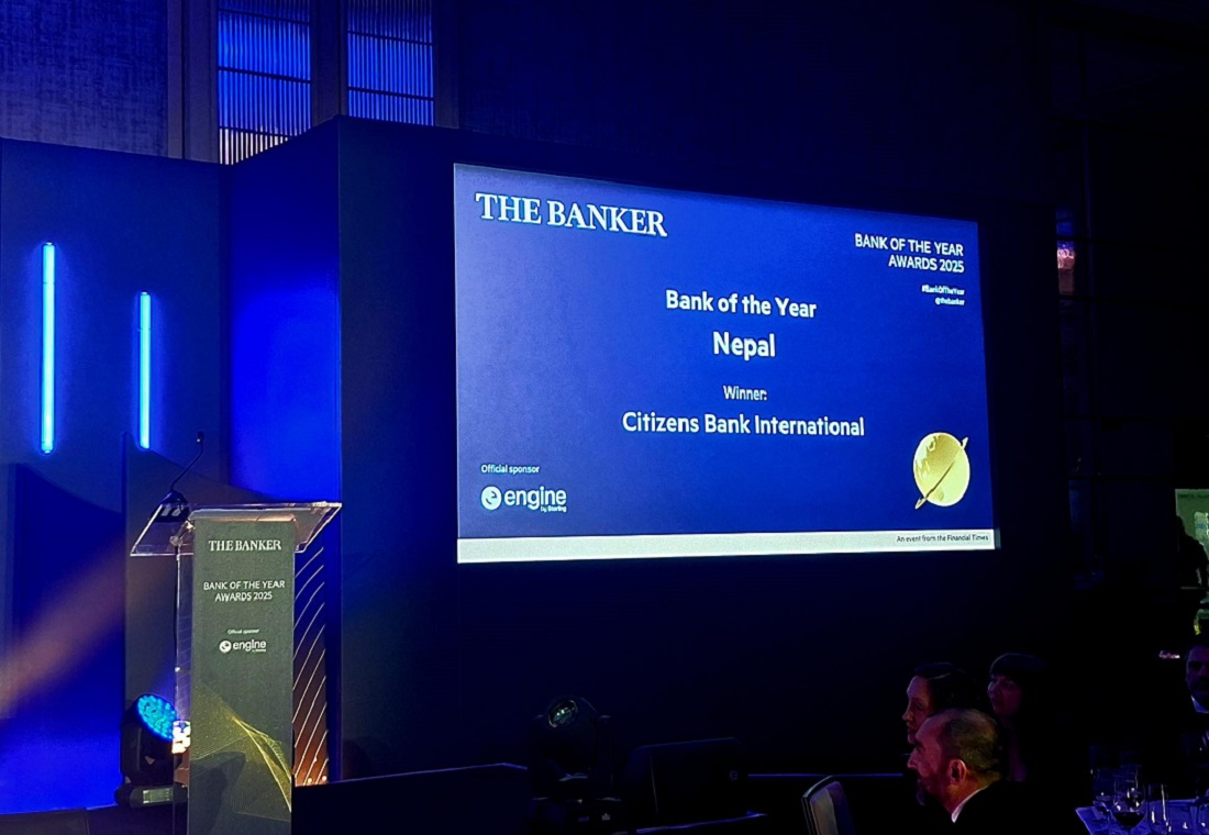 ‘बैंक अफ द इयर २०२५’ अवार्डको उपाधि सिटिजन्स बैंकलाई