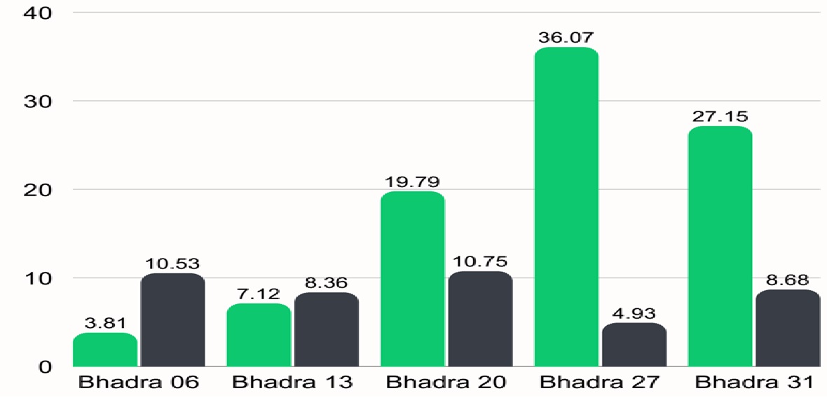 नेपाल बैंकर्स संघको तथ्यांकअनुसार भदौ महिनाको पहिलो दुई हप्तामा वाणिज्य बैंकमा करिब ११ अर्ब मात्र निक्षेप बढेको थियो। तर अन्तिम दुई हप्तामा एक्कासी ६३ अर्ब २२ करोड रुपैयाँ निक्षेप थपिएको छ। चलनचल्तीको मुद्रा पनि अस्वाभाविक रुपमा स्थिर रहनु यसलाई पुष्टि गर्ने अर्को सूचक हो।