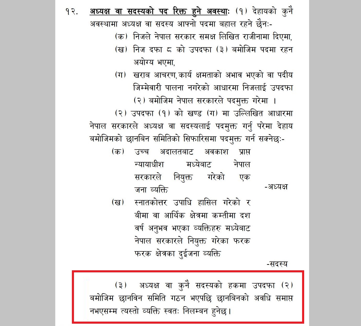 ओझा २०८१ फागुन १२ मा अध्यक्ष नियुक्त भएपनि गत असार ३० गते ‘कार्यक्षमता मूल्याङ्कन’ गर्ने नाममा समिति गठन भएको थियो। बीमा ऐनको दफा १२ को उपदफा ३ अनुसार, छानबिन समिति गठन भएदेखि छानबिन अवधि सकिन नपुगेसम्म अध्यक्ष स्वतः निलम्बन हुने व्यवस्था छ। समिति प्रतिवेदन २०८२ साउन २३ मा सरकारले पाएको थियो। ऐन अनुसार त्यतिबाट ओझा पदमा कायम रहनु पर्ने थियो।